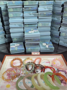pay $159.99 can get 15 random boxes to open.You will get at least 4 bangles and 11 bracelet or necklace or other handmand products。